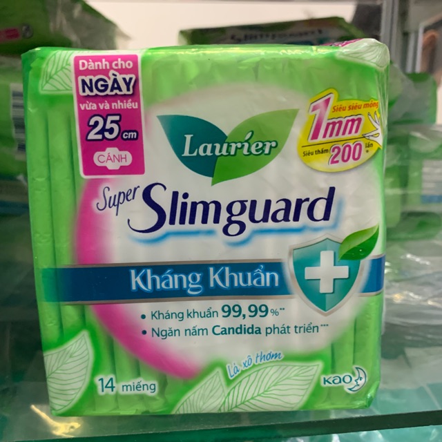 Sức Khỏe > Chăm sóc cá nhân > Chăm sóc phụ nữ > Băng vệ sinh có cánh & không cánh || Băng vệ sinh cao cấp Laurier shuper slimguard kháng khuẩn 25cm ( có cánh ) 14 miếng