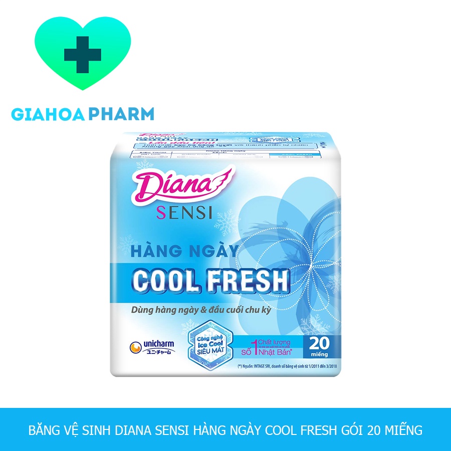 Băng vệ sinh Diana Sensi Hàng ngày Cool fresh (Gói 20 miếng) - Siêu mỏng, nhẹ, êm, mềm, thoáng mát, ngăn mùi