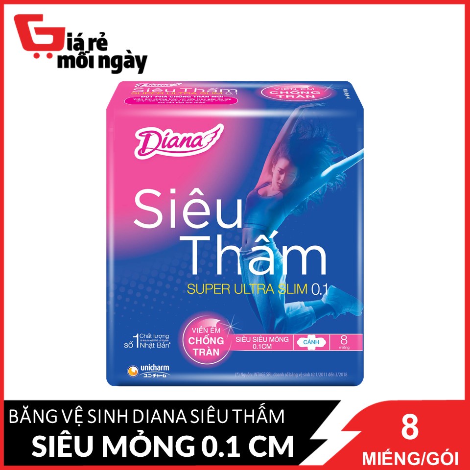 Băng vệ sinh Diana Siêu thấm siêu siêu mỏng 0.1cm Super Ultra Slim 8 miếng/gói
