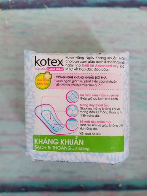 Giới thiệu Băng vệ sinh Kotex hàng ngày kháng khuẩn bịch 8 miếng