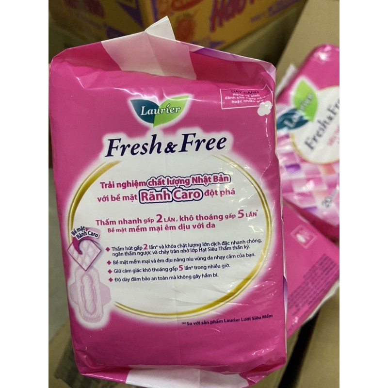 Sức Khỏe > Chăm sóc cá nhân > Chăm sóc phụ nữ > Băng vệ sinh có cánh & không cánh || Băng vệ sinh Laurier Fresh and Free dày có Cánh 20miếng ( gói to )