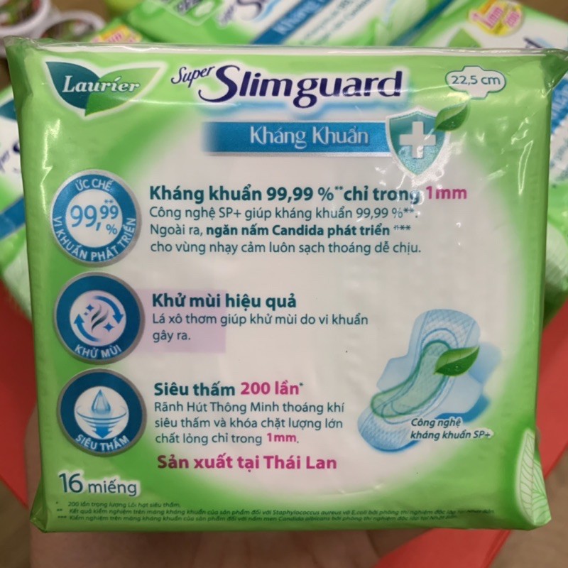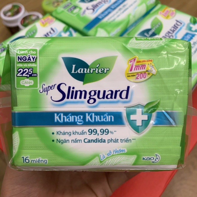 Sức Khỏe > Chăm sóc cá nhân > Chăm sóc phụ nữ > Băng vệ sinh có cánh & không cánh || Băng vệ sinh Laurier super Slimguard kháng khuẩn 22,5cm 16 miếng ( có cánh )