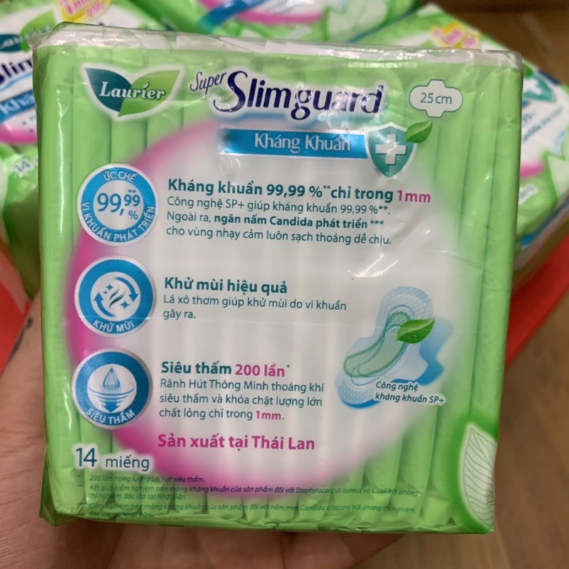 Sức Khỏe > Chăm sóc cá nhân > Chăm sóc phụ nữ > Băng vệ sinh có cánh & không cánh || Băng vệ sinh Laurier super slimguard kháng khuẩn 25cm ( có cánh ) 14 miếng