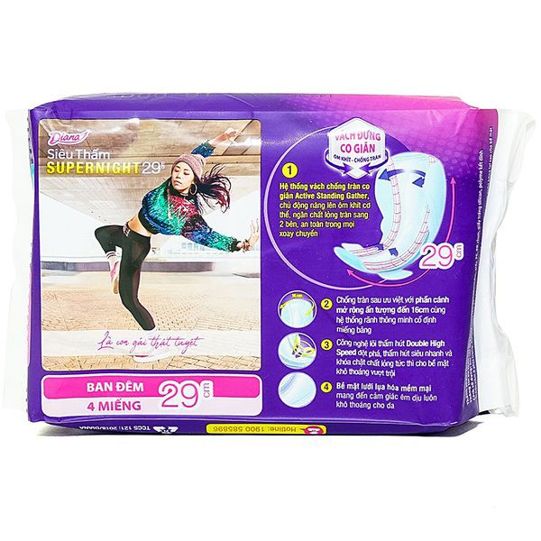 Giới thiệu Băng vệ sinh siêu thấm Diana Super Night ban đêm 29cm 4 miếng