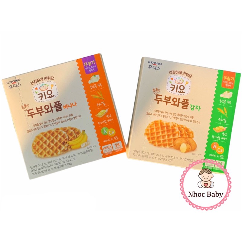 Giới thiệu Bánh ăn dặm waffle đậu hũ Ildong cho bé 12m+ 64g (4 gói x 2 cái)