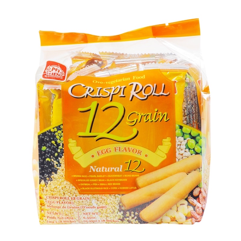 Bánh Cuộn Giòn Dinh Dưỡng 12 Loại Ngũ Cốc Peitien (180g) được làm từ gạo, hạt sen, lúa mạch, bột kiều mạch, yến mạch, đậu Hà Lan, đậu đỏ, đậu xanh cô ve, đậu tây trắng, đậu nành đen, gạo nếp than, bắp,... Do đó, sản phẩm giàu vitamin B, chất chống oxy hóa và các loại khoáng chất khác nên rất tốt cho sức khỏe. Từng chiếc bánh giòn rụm với hương ngũ cốc quyến rũ là món ăn vặt đầy hấp dẫn. Bạn có thể dùng kèm trà hoặc cà phê để tăng thêm hương vị cho sản phẩm. Bánh cuộn giòn được làm từ 12 loại ngũ cốc Pei Tien được sản xuất và đóng gói trên dây chuyền công nghệ hiện đại, đảm bảo an toàn vệ sinh. Hơn nữa, gói bánh nhỏ rất tiện sử dụng trong gia đình cũng như mang theo trong những chuyến dã ngoại, đi chơi. Sản phẩm cũng là món quà thú vị dành tặng cho bạn bè, người thân. HSD: 12 tháng kể từ ngày sản xuất