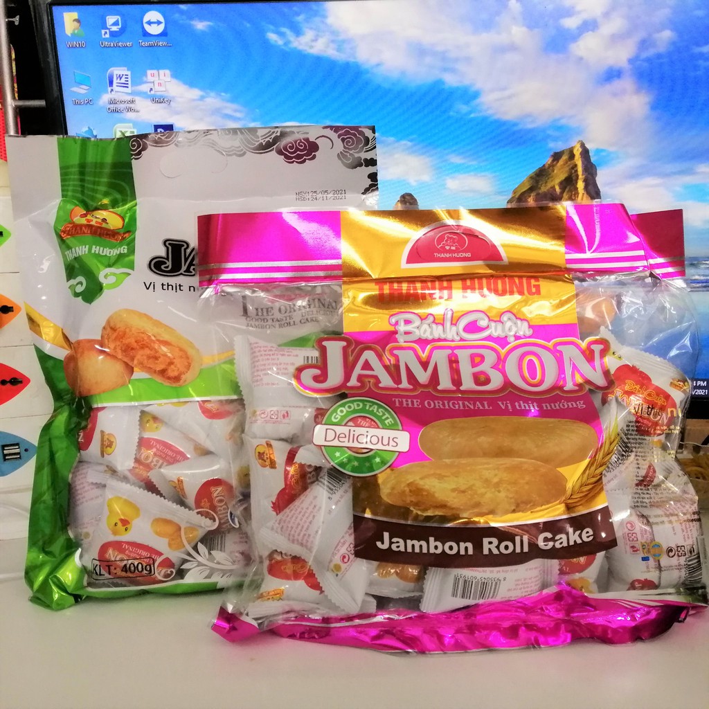 Bánh Cuộn Jambon Thanh Hương là sự kết hợp thú vị không kém phần độc đáo của lớp vỏ bánh ngọt vừa cùng vị mặn dịu nhẹ của jambon tạo nên một tuyệt tác mà bạn nên thử để cảm nhận sự thơm ngon ấy. Bánh có 2 bao bì màu xanh và màu hồng nhưng cùng loại bánh và hương vị giống nhau