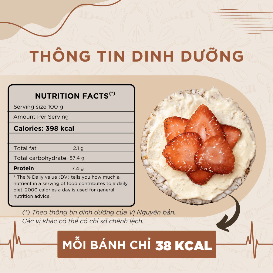 ✓ 1 bánh chứa khoảng 38 calo, thuận tiện tính toán calo cho mỗi bữa ăn