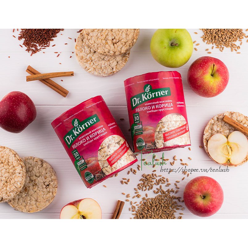 BÁNH NGŨ CỐC ĂN KIÊNG DR KORNER - VỊ TÁO QUẾ HỘP 100GR Thành phần: lúa mì, gạo tấm, kiều mạch, nước ép táo tự nhiên, quế xay, muối iod