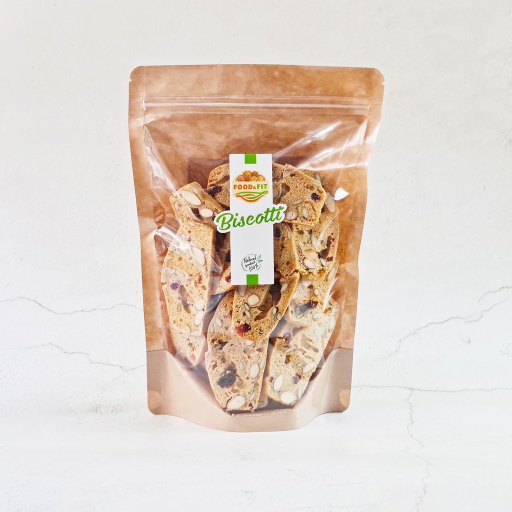 Bánh Biscotti nhà Food&Fit được làm hoàn toàn bằng bột nguyên cám, sử dụng mật ong nguyên chất thay cho đường, nên đảm bảo đúng chuẩn healthy, phù hợp cho mọi chế độ ăn kiêng, giảm cân.