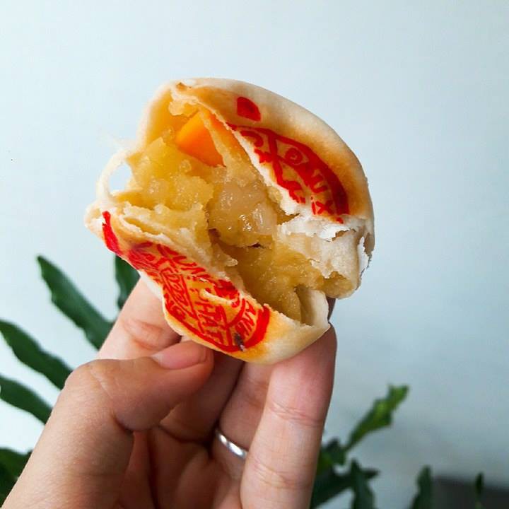 Nhân hấp dẫn. Biết mọi người sợ ớn nên Ngon dặn lò lựa trứng muối be bé thôi nạ 😁 đậu xanh - sầu riêng siêu lạ 😍 Thêm cái trứng muối chút chéo làm bánh càng thêm 😁