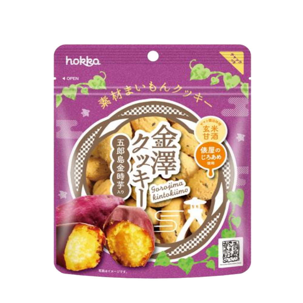Thành phần | Nguyên Liệu chế biến đều là hàng nội địa Nhật:Công thức chế biến:Với bột mì Nhật, khoai lang Gorojima Kintoki được trồng tại tỉnh Ishikawa, xiro làm từ gạo lức vàlúa mạch Jiroami, hạt vừng,...Bánh qui khoai lang Nhật Gorojima Hokka Nhật không dùng nguyên liệu gây đột biến GenKhông dùng chất bảo quản. |