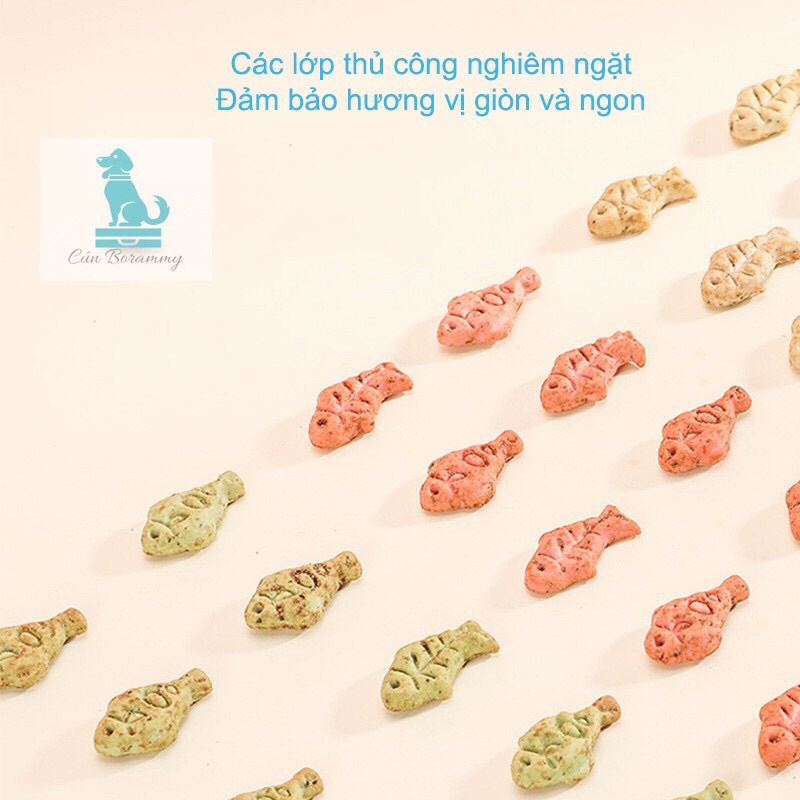 Đồ ăn cho mèo Bánh quy cho mèo_ Bánh thưởng cho mèo chắc răng dễ tiêu hóa dưỡng lông cho mèo Quy cách: 200g Thành phần: bột mì bổ sung carbohydrate, catnip một loại cỏ tự nhiên không độc hại và gây nghiện cho mèo, cá hồi rất giàu Q3