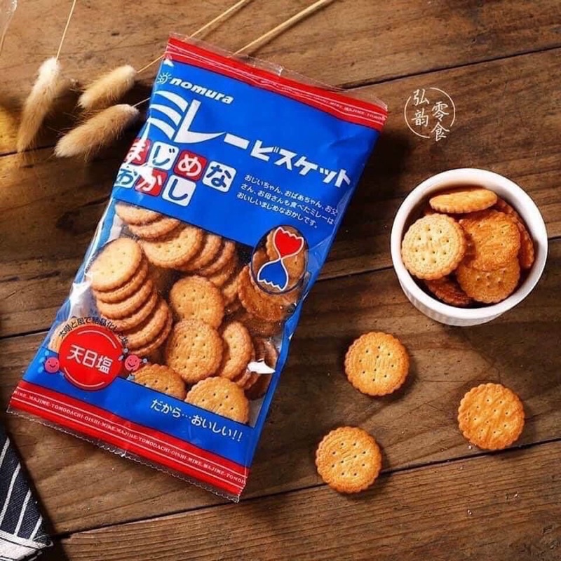 - Bánh quy mặn Nomura siêu ngon, ăn nghiện dã man mọi người ạ. Bánh quy giòn giòn, lớp ngoài có vị muối mặn mặn rất thích hợp cho những ai không thích ăn đồ ngọt. Bánh không cần để tủ lạnh chỉ cần bọc lại đến cả ngày vẫn còn giòn tan không bị ỉu như những dòng bánh khác.