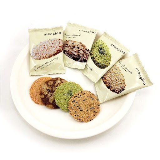 Lớp đế bánh mỏng giòn rụm khi cắn rất vui miệng, phía trên là lớp vừng, hạnh nhân với hương bị béo ngậy. Bánh là sự kết hợp tinh tế của các loại hạt ngũ cốc có mùi hương nhẹ, béo ngậy cùng sự ngọt ngào từ lớp vỏ bánh được làm từ trứng và bột cùng các nguyên liệu khác như trà xanh, ca cao…