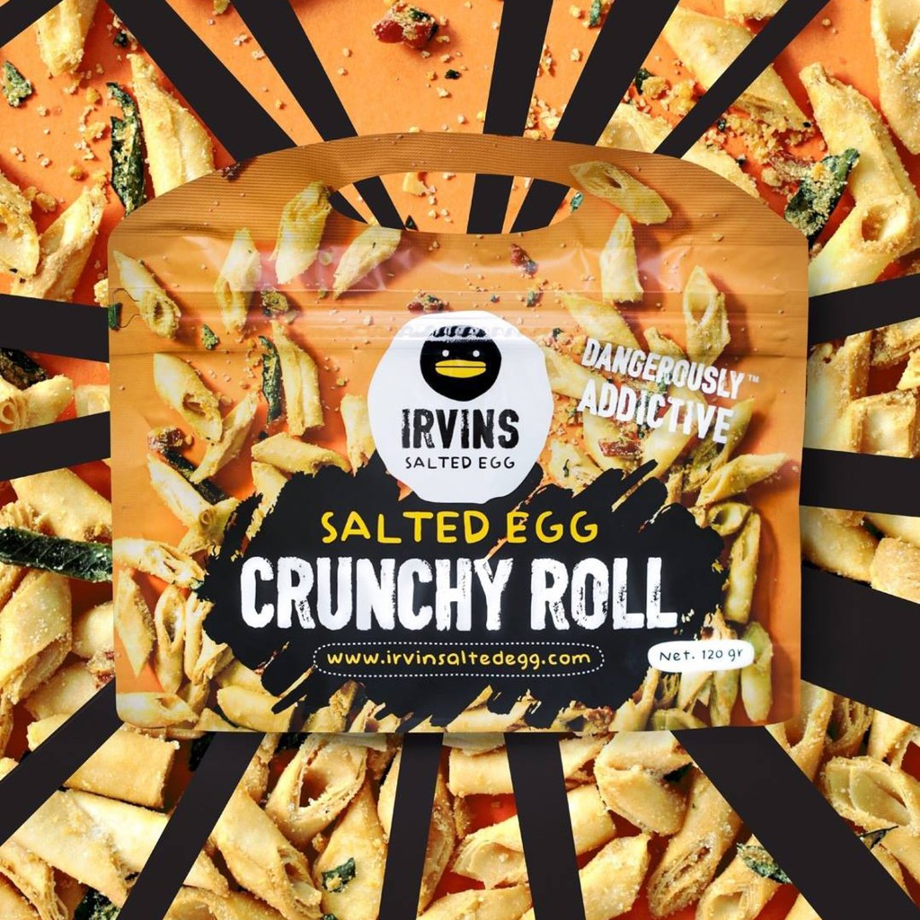 Thực phẩm và đồ uống > Các loại bánh > Bánh ngọt/ pastry || Bánh snack cuộn giòn trứng muối IRVINS - Crunchy Roll 120gram