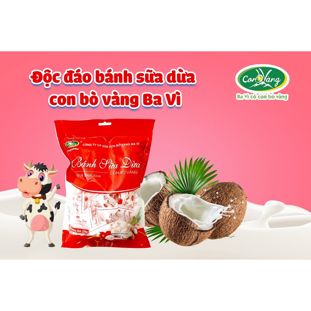 Giới thiệu Bánh Sữa Chua Ba Vì Con Bò Vàng Các Vị Sầu Riêng, Phô Mai, Sữa Dừa, Hạt Điều Túi 250g