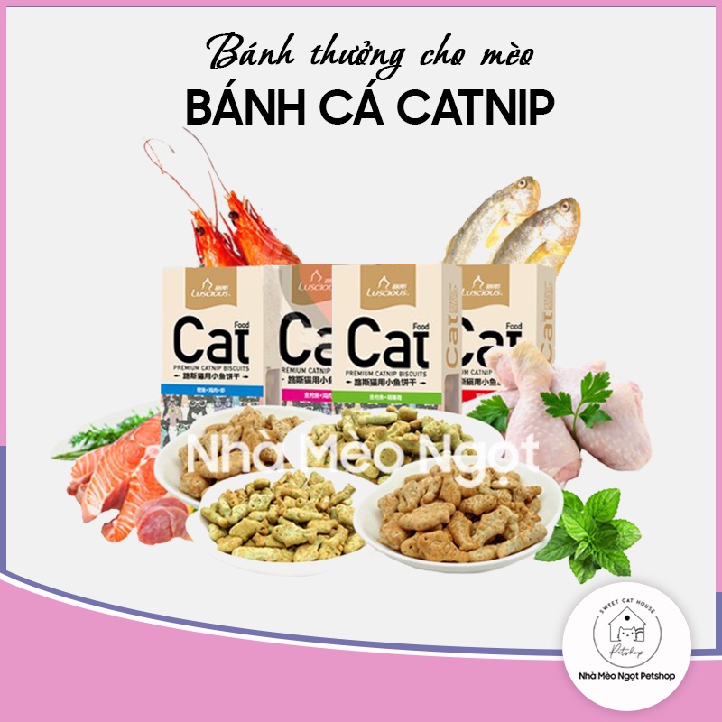 Bánh thưởng ăn vặt cho mèo, bánh cá catnip Luscious