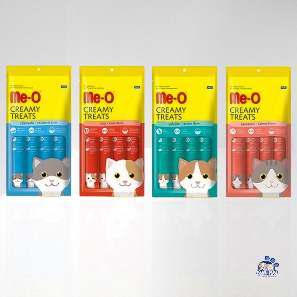 Me-O là thương hiệu thức ăn và đồ dùng cho mèo thuộc tập đoàn Perfect Companion Group (PCG) của Thái Lan. Me-o creamy treat là súp thưởng dạng kem với nhiều hương vị và chất dinh dưỡng giúp mèo phát triển cân bằng. Trong đó: Chất xơ giúp tăng cường hệ thống bài tiết. Taurine giúp tăng cường hệ miễn dịch và thị giác. Các dưỡng chất trong Omega 6/Kẽm/DL-Methionin giúp làn da khỏe mạnh. Giúp bổ sung canxi cho những chú mèo nhà bạn, cho răng và xương chắc khỏe. Bổ sung khoáng chất và vitamin, protein giúp nuôi dưỡng lông và da mềm mượt.