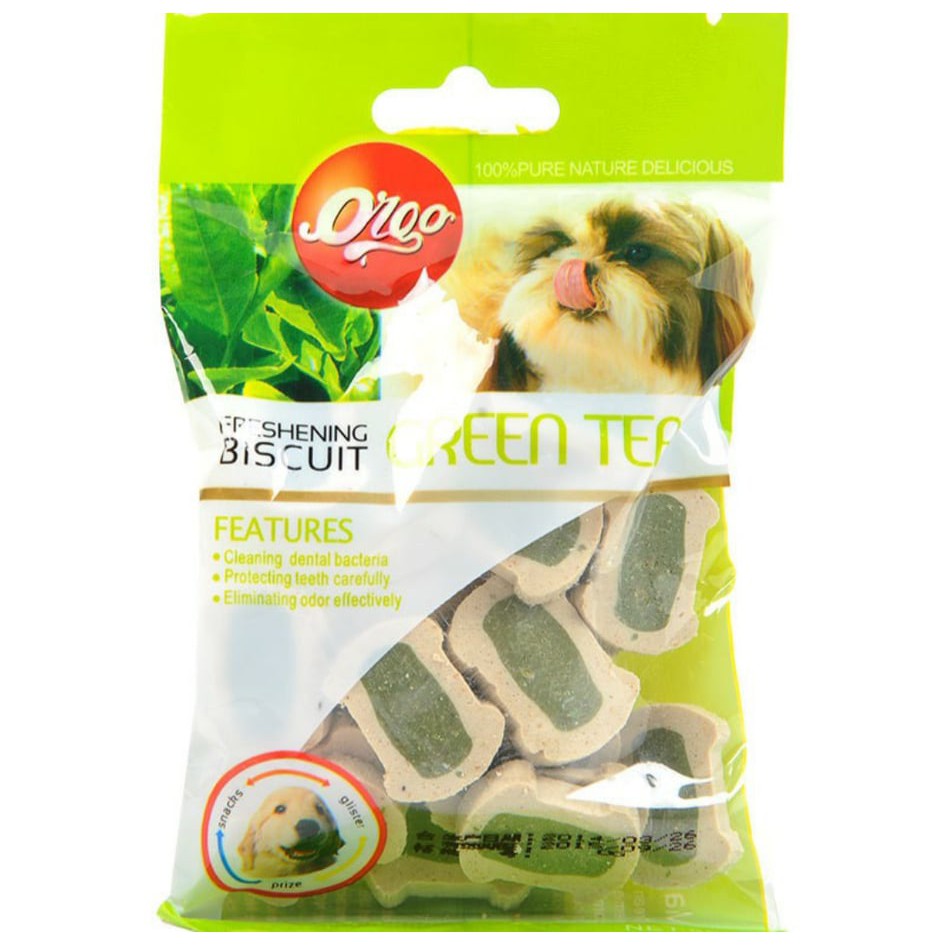 Bánh Thưởng Cho Chó có tác dụng làm sạch răng cho chó. Sản phẩm có thể kết hợp dùng để huấn luyện. CÔNG DỤNG: - Bánh thưởng cho chó vị thịt bò Orgo Bacon Beef có thêm thịt bò tươi ngon, thông qua quá trình sấy khô tỉ mỉ, vẫn có thể đảm bảo được thành phần dinh dưỡng có trong thịt bò, bổ sung cho thú cưng lượng protein và năng lượng cần thiết, thúc đẩy khả năng miễn dịch - Bánh thưởng cho chó vị trà xanh Orgo Green Tea có thêm trà xanh, thông qua quá trình sấy khô tỉ mỉ, vẫn có thể đảm bảo được thành phần dinh dưỡng, bổ sung cho thú cưng lượng protein và năng lượng cần thiết, khử mùi hôi miệng, thúc đẩy khả năng miễn dịch - Đặc biệt có thêm chút đường oligose, có thể chăm sóc hệ thống đường ruột và dạ dày, hiệu quả trong việc loại bỏ mùi lạ từ phân và mùi hôi miệng cho hơi thở thơm mát hơn. - Với độ cứng vừa phải, có thể đáp ứng hoàn toàn nhu cầu nhai của thú cưng, làm sạch hiệu quả bề mặt răng và mát sa nướu răng.