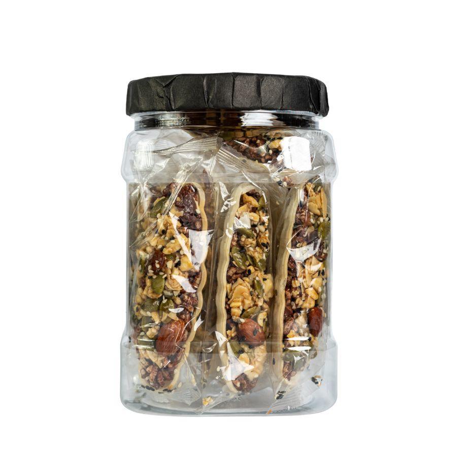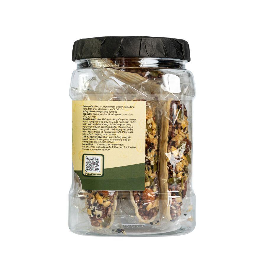 Thành phần: Gạo lứt, Hạnh nhân, Bí xanh, Điều, Nho vàng, Mật ong, Mạch nha, Muối, Dầu ăn