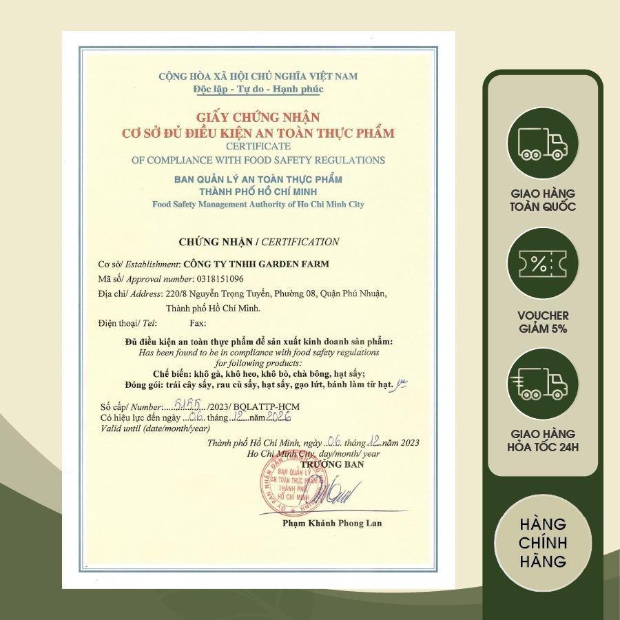 Tiêu chuẩn chất lượng: Chọn lọc kỹ lưỡng từ nguồn nguyên liệu chất lượng cao từ nhà cung cấp có chứng nhận ISO, HACCP, HALAL