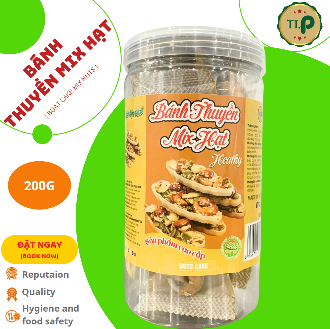 Mô tả sản phẩm: Đây là sản phẩm bánh thuyền mix hạt được Tân Lộc Phát sản xuất, kết hợp giữa hương vị ngọt dịu của bánh thuyền và độ giòn của các loại hạt. Bánh được làm từ các loại hạt như h...