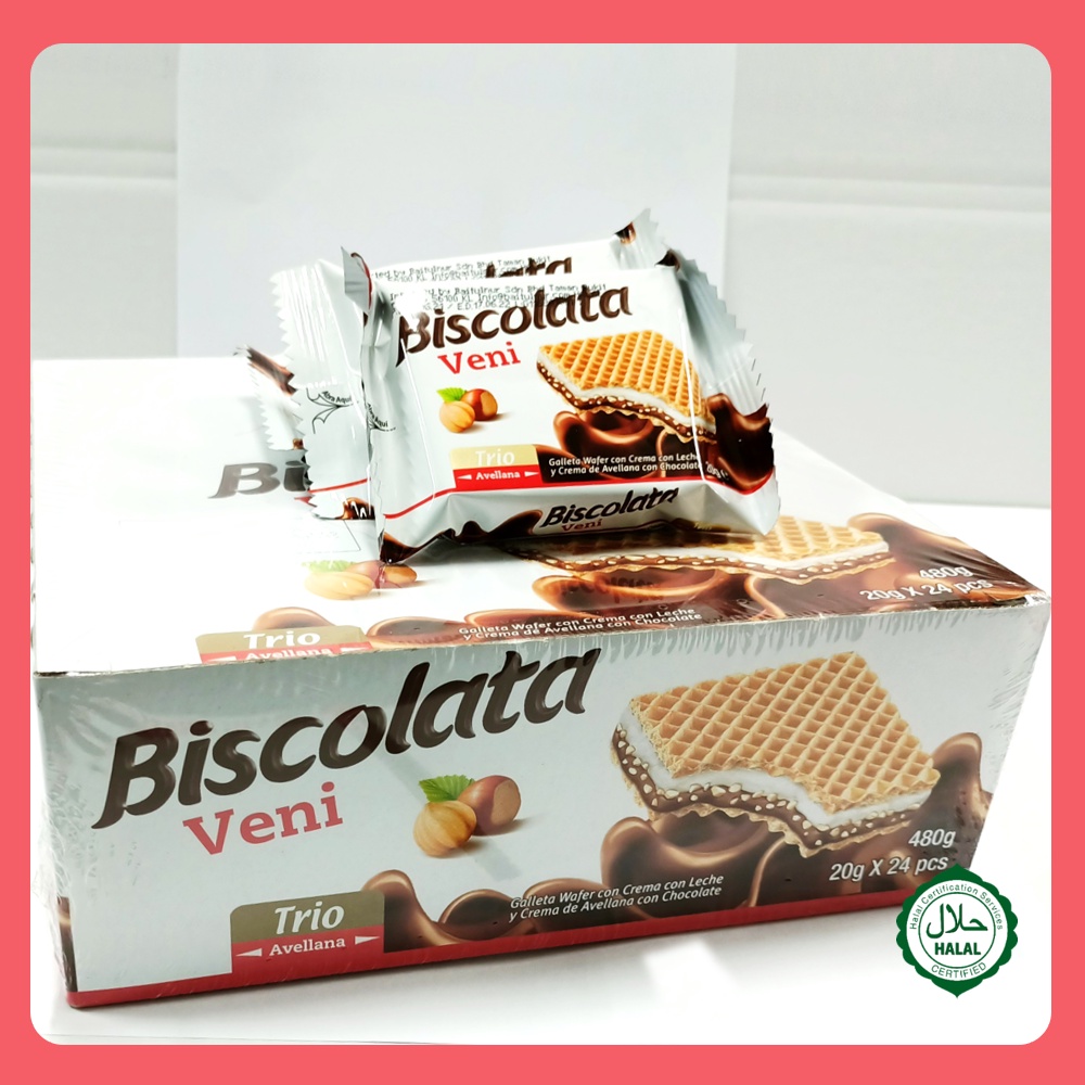 Thành phần | Thành phầ: Kem (37,5%): đường, dầu thực vật, bột whey, bột sữa (5%), chất nhũ hóa (E322(i)). Kem hạt phỉ (37,5%): đường, dầu thực vật, hạt phỉ nghiền (12%), bột cacao, bột whey, bột sữa, chất nhũ hóa (E322(i)). Bánh xốp (18%) (Bột mỳ, dầu thực vật , bột cacao, muối, chất nhũ hóa (E322(i)), chất tạo xốp (E500(ii)). Hạt phỉ (7%). Cảnh báo: Có thể chứa chất gây dị ứng. Ngày sản xuất: In trên bao bì. |