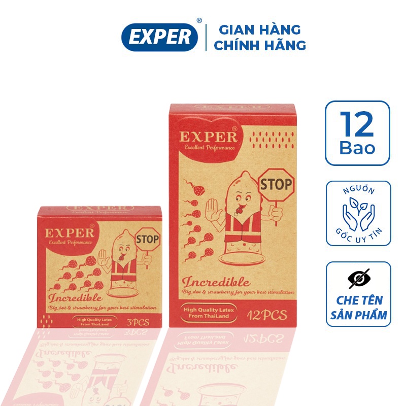 Bao cao su EXPER Incredible gai lớn hạt nổi loại bcs trơn cổ thắt kéo dài hộp 3 cái 12 cái Exper Store