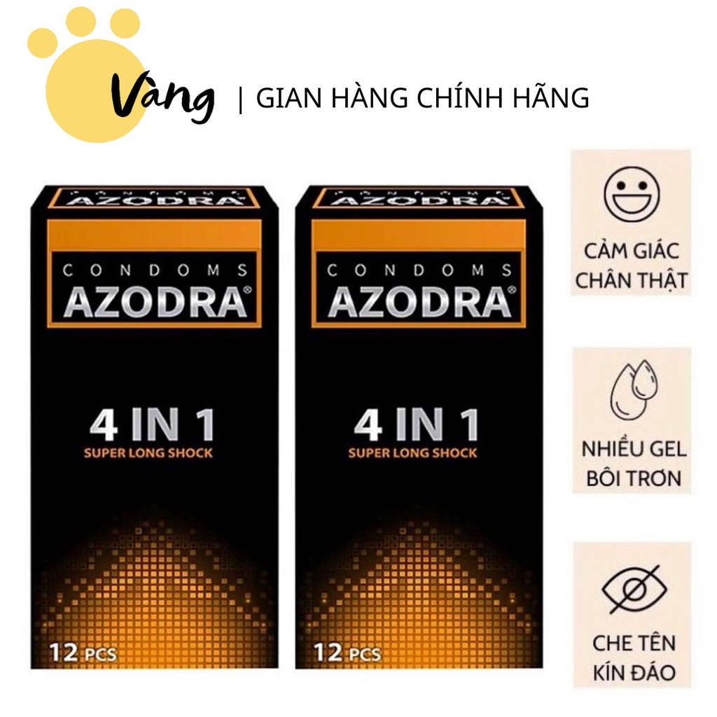 Giới thiệu Bao Cao Su Gân Gai Kéo Dài Thời Gian Azodra 4in1 Hộp 12 Bao