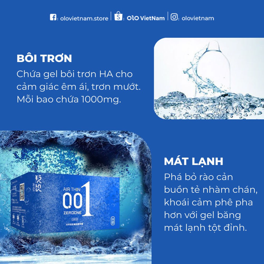 Giới thiệu Bao cao su OLO Air Thin gel mát lạnh siêu mỏng 0.01mm 10 bao