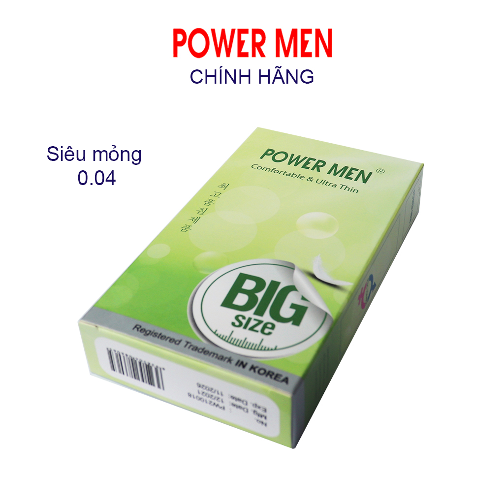 +Tại việt nam, các loại bcs siêu mỏng được sử dụng phổ biến là size 49mm, 52mm, các loại bao cao su siêu mỏng 0.04 size lớn 54 -56mm có rất ít lựa chọn vì vậy Powermen với size lớn 55mm mà lại cực kỳ mỏng chân thật trở thành một bcs hoàn hảo cho quý ông ngoại cỡ.