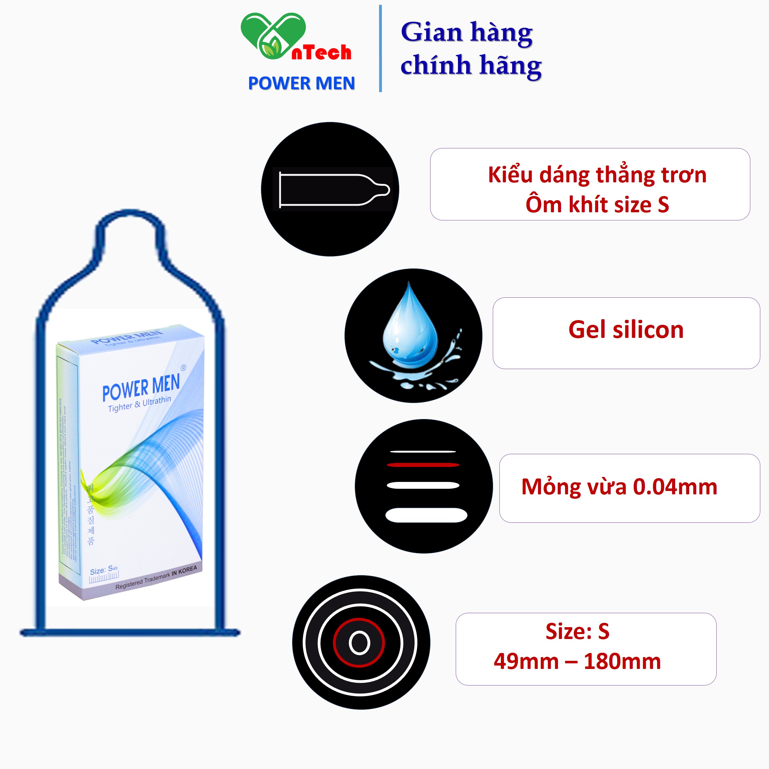 - POWER MEN TIGHTER & ULTRATHIN là dòng bao cao su siêu mỏng trơn thiết kế ôm sát siêu truyền nhiệt tsize nhỏ 49mm