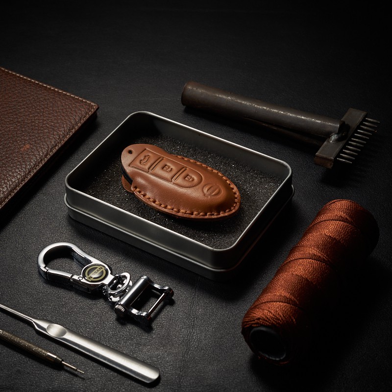 Ô tô > Phụ kiện ngoại thất ô tô > Hình dán, logo, huy hiệu || Bao Da Chìa Khóa Ô Tô Nissan xtrail / navara 3 Nút Dạng Dẹp Da Bò