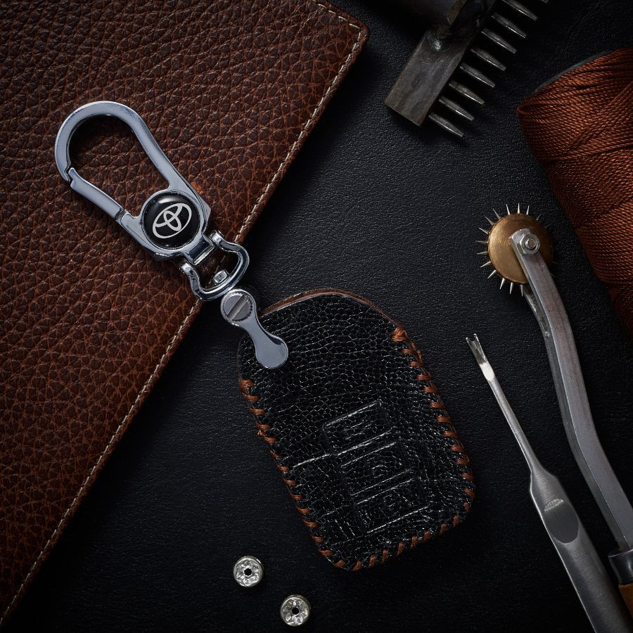 Giới thiệu bao da chìa khóa ô tô Toyota Vios 2019 3 nút da đà điểu có gù dạng hộp màu đen