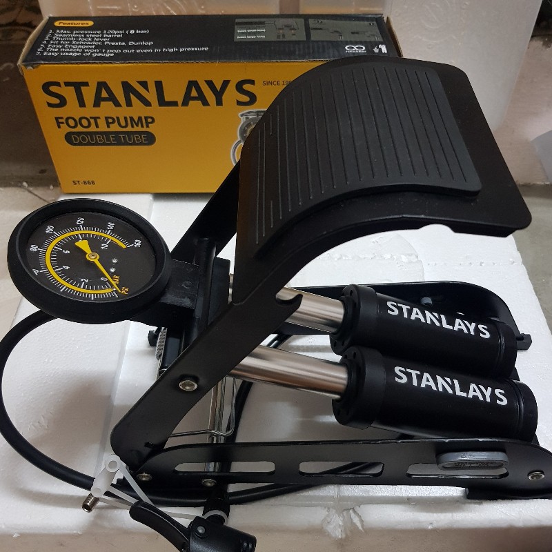 - Sản phẩm ống bơm gồm: + Đồng hồ đo áp suất, van bơm có đầu gài tiện lợi cho Ô tô , xe Honda và xe đạp , bơm bóng , phao bơi , bể tắm cho bé... + Bàn đạp có thể xếp lại được một cách gọn gàng + Dây dẫn và dụng cụ bơm đạp 02 ống đen - stanlays (Kích thước: 20cm x 20cm x 25cm) rất nhỏ gọn, nhẹ và dễ xài. - Công suất: 15kg/cm3. - Được thiết kế rất tiện lợi và dễ dàng sử dụng, có thể đem theo bên mình khi có sự cố xe xẹp lốp khi đi chơi xa, qua những khoảng đường vắng mà không có tiệm sửa xe. - Đặc biệt, dây bơm hơi được làm từ cao su cao cấp chống gập và với 2 pitton sẽ giúp việc bơm hơi trở nên nhanh chóng và nhẹ nhàng hơn. - Dùng cho tất cả các loại xe như: Xe đạp, xe máy, xe ôtô ... - Bảo hành: 01 đổi 01 trong vòng 1 tuần lỗi do nhà sản xuất #bơm#bơm_xe#bơm_hơi#bomoto