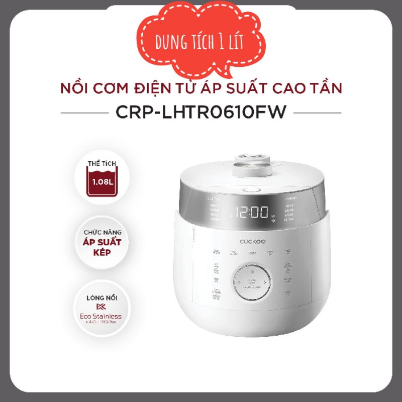 Giới thiệu [Bảo Hành 24 Tháng]Nồi Cơm Điện Cao Tần Áp Suât Kép Cuckoo CRP-LHTR0610FW 1.08L(Nội Địa Hàn)