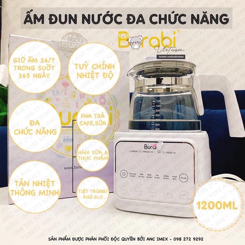 ( BẢO HÀNH CHÍNH HÃNG- TẶNG KÈM 1 PHỤ KIỆN ) Ấm đun nước thông minh đa chức năng Burabi chính hãng