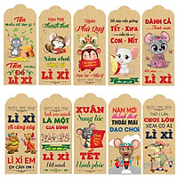 10 bao lì xì giấy kraft in hình chuột (nhiều mẫu ngẫu nhiên)