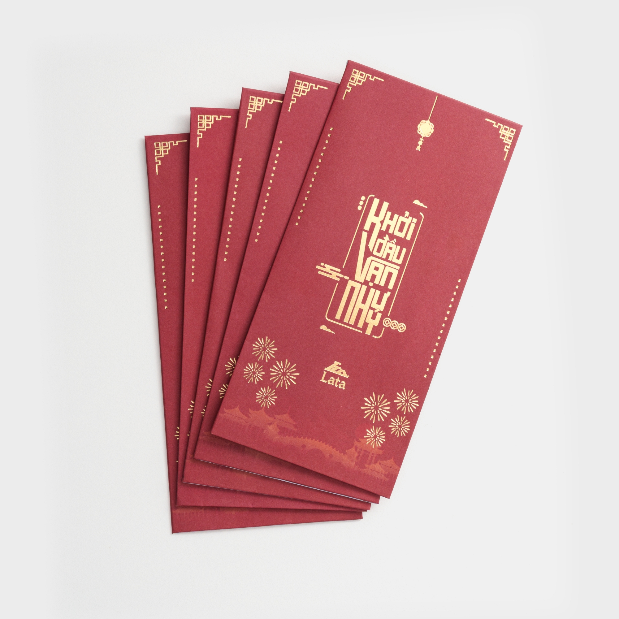 Bao lì xì chúc mừng năm mới LX2 được thiết kế với gam màu đỏ trầm sang trọng, kết hợp họa tiết ép kim ánh vàng tinh tế, mang đậm không khí Tết truyền thống. Dòng chữ “Khởi đầu vạn như ý” được thể hiện cách điệu hiện đại, gửi gắm thông điệp may mắn, bình an và khởi sắc cho năm mới. Bao lì xì là lựa chọn phù hợp để trao gửi lời chúc tốt đẹp nhất đến người thân, bạn bè hay đối tác trong dịp đầu năm.