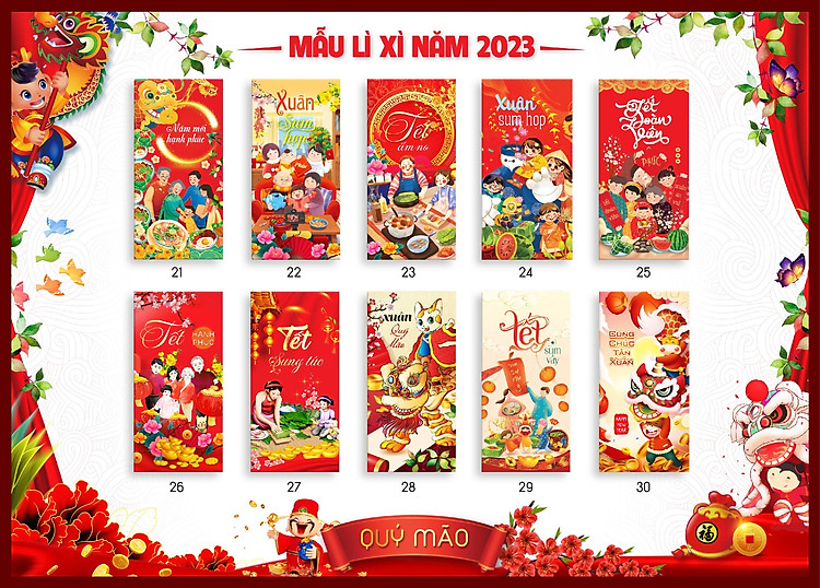 Bao Lì Xì Tết 2023 Quý Mão Được Chọn Mẫu, Bao Lì Xì MAY BELLS Mẫu 21 đến 30 Cao Cấp, Sang Trọng, Dễ Thương