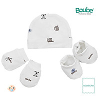 Set phụ kiện nón bao tay bao chân họa tiết thú cưng cho bé sơ sinh Boube Vải cotton organic thoáng mát