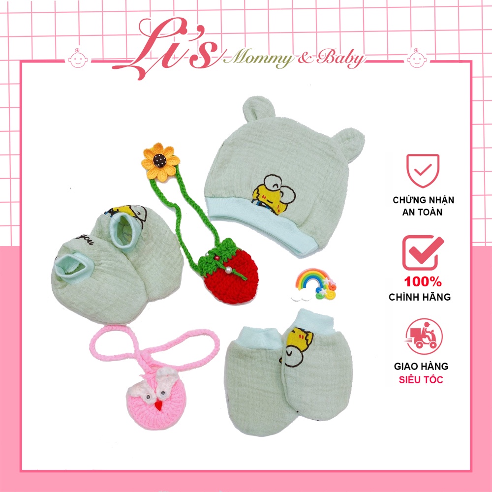 Giới thiệu Bao Tay Chân Sơ Sinh Kèm Mũ Set Bộ Sơ Sinh Vải Xô Mềm Mịn BSS29