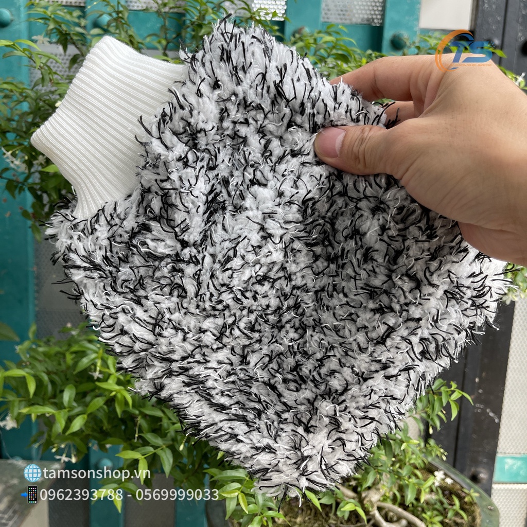 Bao tay rửa xe sợi nhung san hô xám (1 chiếc)