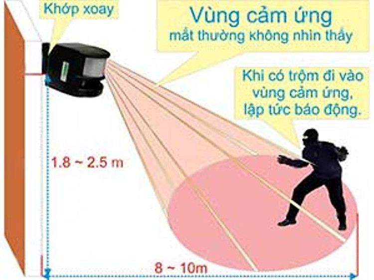 o Báo động bằng còi hụ khi có đối tượng chuyển động trong khu vực