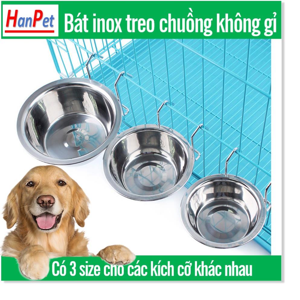 Hanpet- Bát ăn cho chó mèo - Bát inox treo chuồng có giá đỡ ( 3 size NHỎ, TRUNG, LỚN) ( 4711734) chén ăn uống cho chó mèo