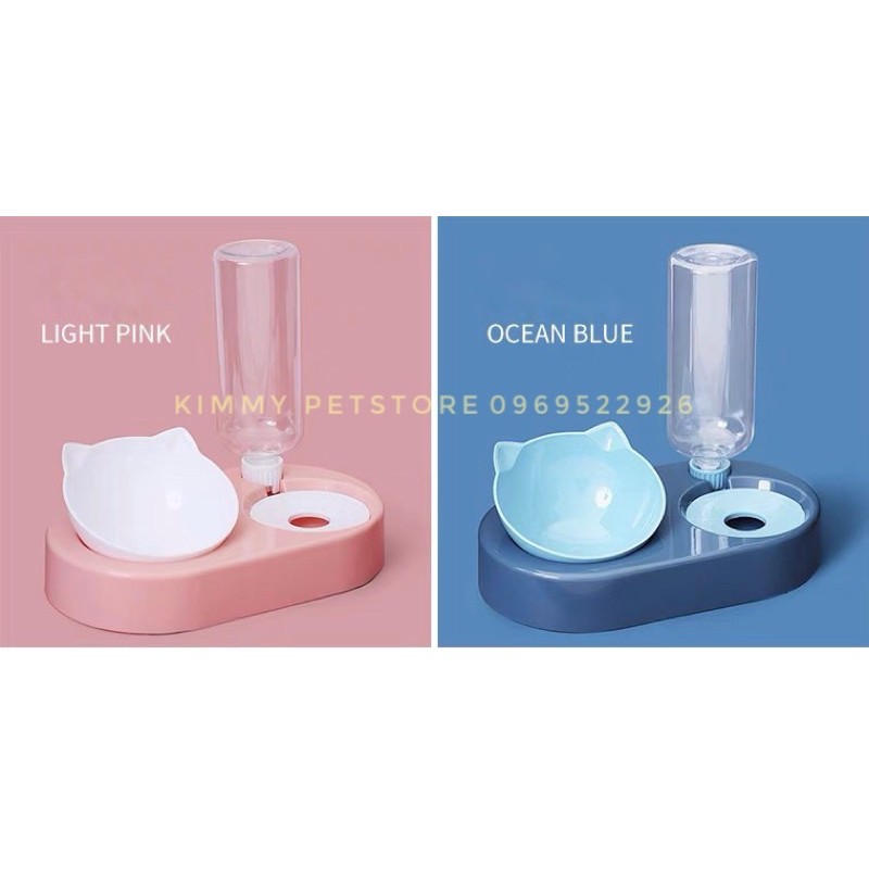 Bát ăn nghiêng cao cấp kèm bình uống nước tự động cho thú cưng chống gù, vẹo cột sống, bát ăn chó mèo chống trơn trượt