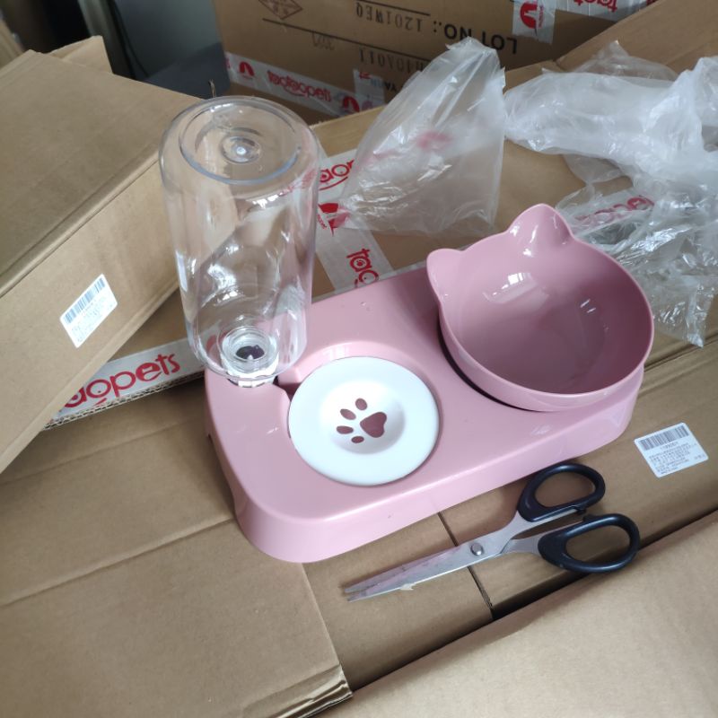 Chăm Sóc Thú Cưng > Phụ kiện cho thú cưng > Bát & dụng cụ ăn || [Mã 44FMCGSALE1 giảm 10% đơn 250K] Bát ăn nghiêng kết hợp bình uống nước tự động cho chó mèo - Chống gù lưng cho boss
