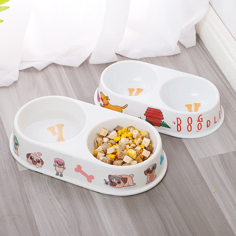 Bát đôi bằng nhựa cho chó mèo, hoạ tiết đáng yêu