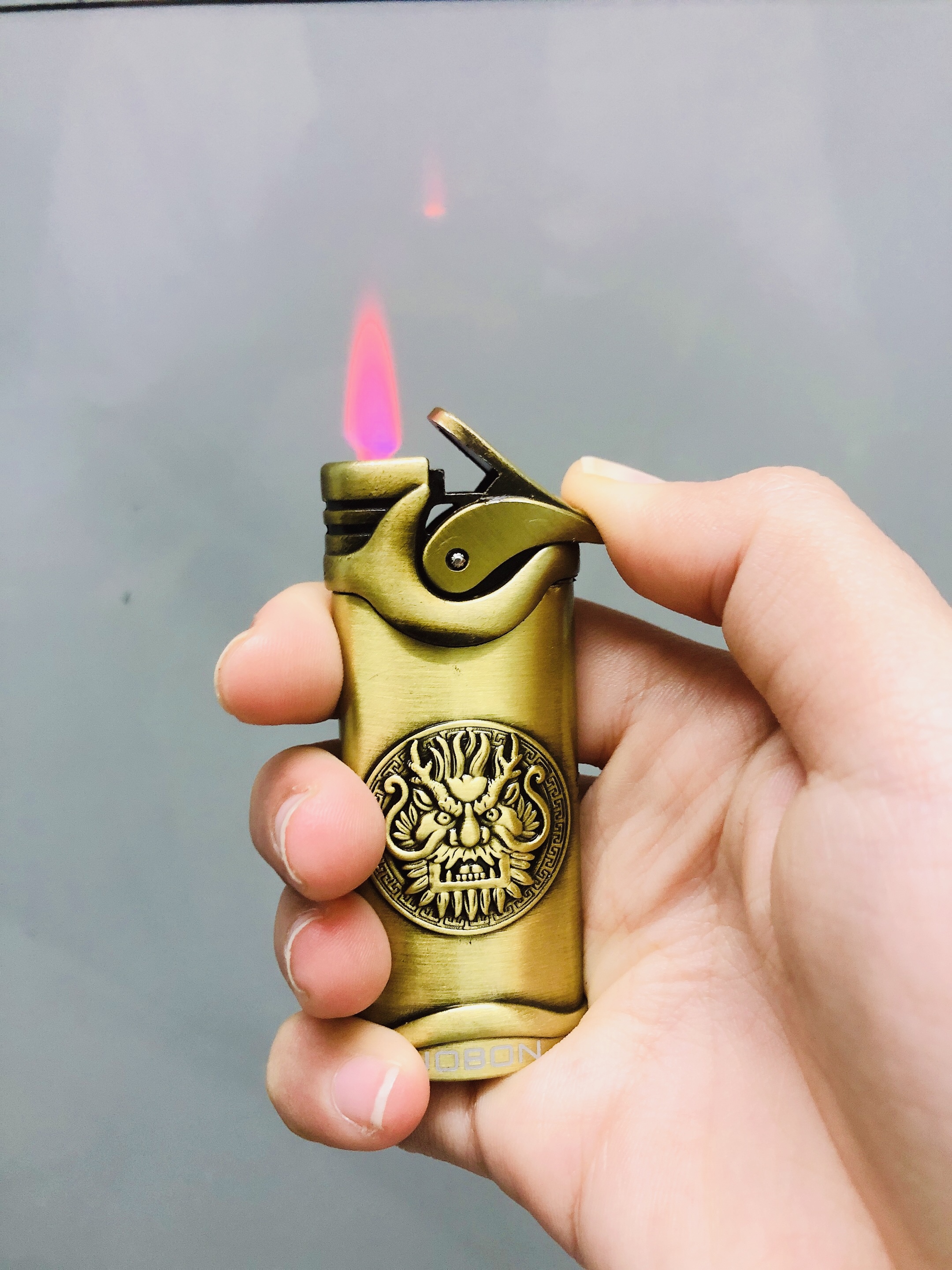 Bật Lửa Hột Quẹt Khè Jobon 513 Khắc Hình Đầu Rồng Kim Loại Nguyên Khối - xài gas